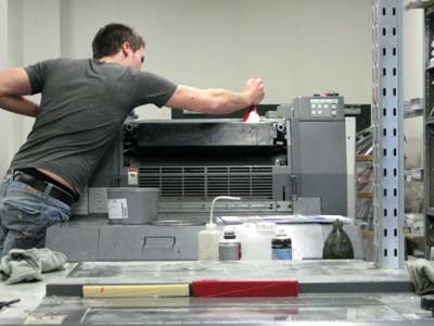 ... "Splash!" it went, "Drip and Lump!", and "Sticky!" it looked when this member of the printing team refilled the varnish.