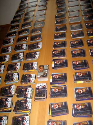 I think that it took about 30 hours (devided between 3 people) to sort all the decks and fold the boxes. It was happy work, though, I have to say!