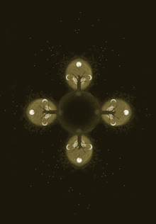 As you can see, the backs of the cards show the tree of the World card - only times four, pointing in the four directions of the sky.